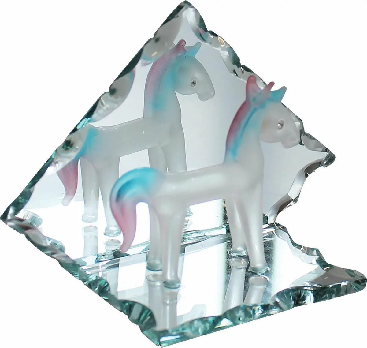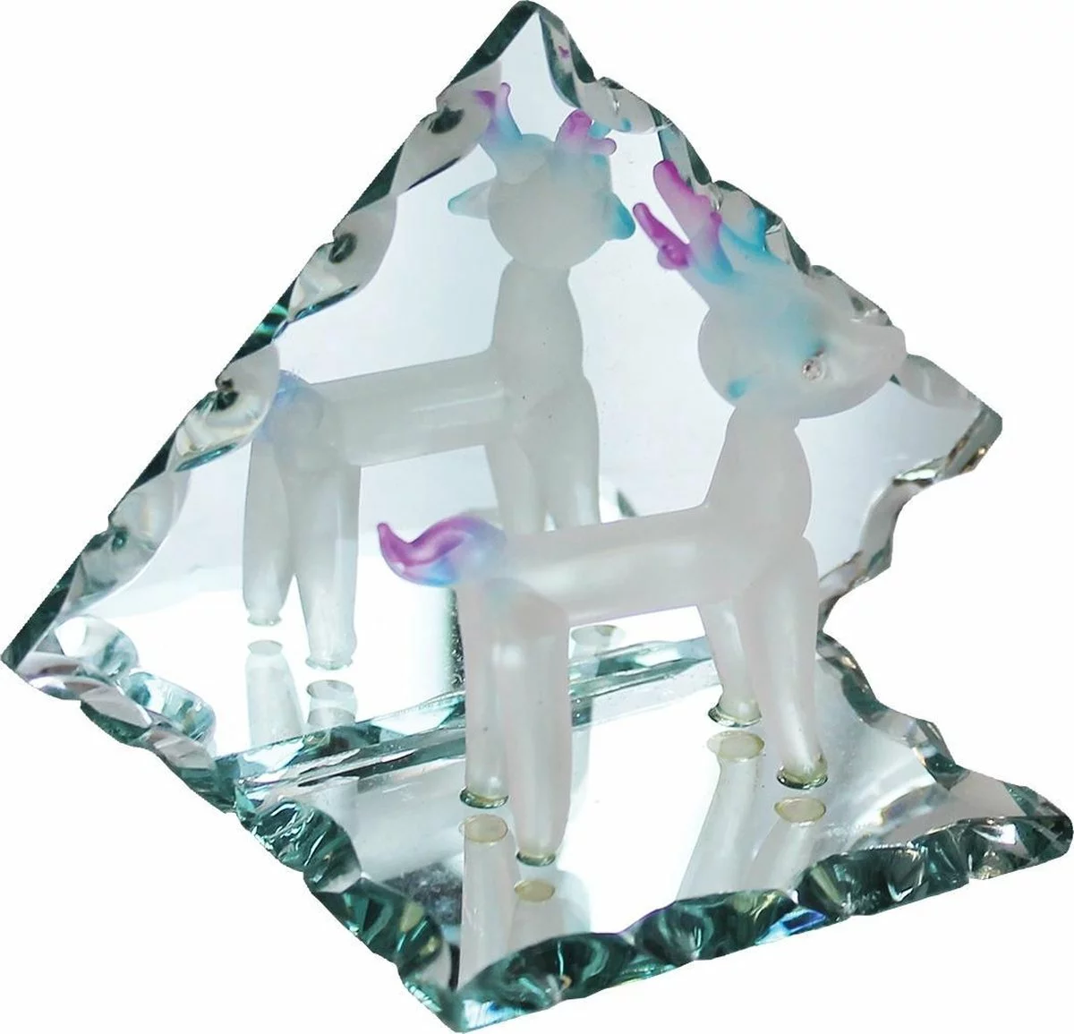 Ці фігурки тварин є унікальними предметами мистецтва. Кожна скляна фігурка тварини створена на основі традиційних кустарних технік склярства. Дуже делікатний виріб. Фігурки закріплені на дзеркальній поверхні. Можуть бути дуже гарним подарунком на всі випадки, а також окрасою дому та офісу.